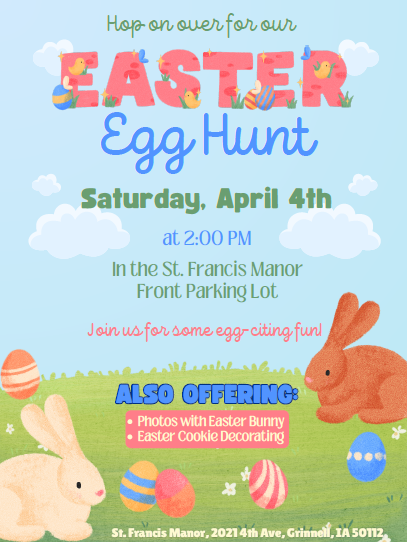 Originally established in 1977, St. Francis Manor, Inc.'s A Life Plan Community located in the southeast corner of Grinnell continues to evolve to meet the changing needs of the greater Poweshiek County area and its residents. Its current 31-acre campus includes Seeland Park, a 55+ independent living community with 145 residences, St. Francis Manor, a nationally recognized top performing nonprofit skilled nursing and long-term healthcare facility, a rehabilitation clinic providing inpatient, outpatient and in-home home physical, occupational, music and speech therapy services, and Community Services which provides private-duty home healthcare. The Hammond Center, a 20-apartment assisted living community, is now open. A public charity, the St. Francis Manor Foundation, was established in 2008 to support St. Francis Manor, Inc. in its charitable endeavors to offer individuals a variety of living options and services ranging from short-term care to a continuum of care. For more information regarding our life plan community, please visit www.stfrancismanor.com
